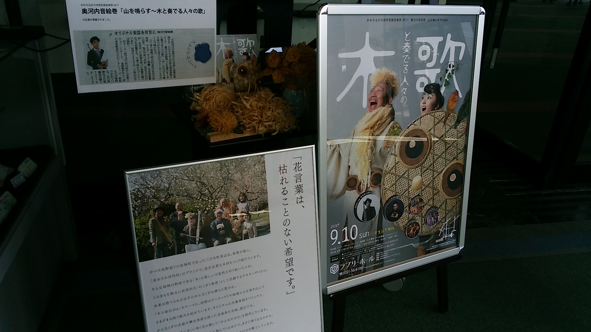 遠路はるばる ご足労頂き光栄至極いたみいります。 リハーサルでは大丈夫だったのに 実は本番で色々が大波乱。 それでも御客様に楽しんで頂けたようでよかったです。 台詞の無い音楽劇で 見た方それぞれが感じた『おはなし』を心のお土産にしていただけたならば 作り手や演者側としてこんなに嬉しい事はありません。 有難うございました。 追伸 演奏後の全体記念撮影は皆笑顔で 『奥河内♪』と叫びましたよ。 ブログのアーカイブを遡ると 丁度10年前の10月に河内長野ラブリーホールで 世界民族音楽祭の一環として 世界のこぎり音楽祭を開催させて貰っていました。 以来なんやかんやずっと ラブリーホールと親しくさせて頂いています。 今年も来ました世界民族音楽祭! 私も10年ぶりに大ホールの上に立ちます。 のこぎりメインじゃなくて パントマイムいいむろなおき氏をフューチャーした 音楽劇です。 さあて今から前日リハーサルをはじめます。 北欧の楽器『カンテレ』を奥河内の木で制作した『オカンテレ』 『三弦』を奥河内の木で制作した『オッカサン』 鉋屑をを貼り合わせて吹き口をつければ『オカリナ』ならぬ『オカンナ』 かんなくずで作った衣装に ミュージカルスクールの子供たち。 だんじり、阿波踊り、和太鼓、民謡、声楽家・・・・・ 是非会場まで足をお運び下さい。 会場でお待ちしております。 |